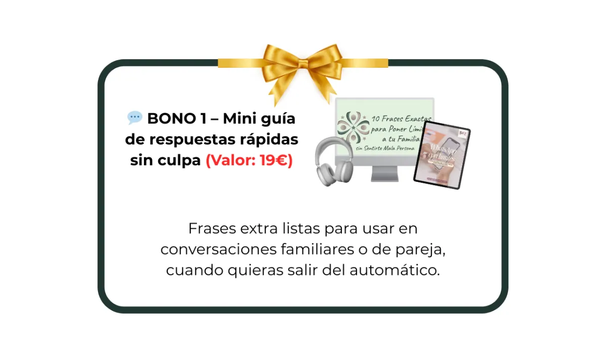 👉 Haz clic en el botón de abajo y accede ahora a “10 frases para poner límites a tu familia sin sentirte mala persona” por solo 17€.